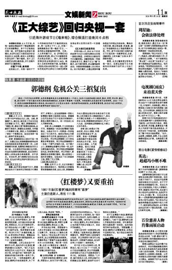 本报综合消息 英达与新锐导演王宁合作的喜剧电影《爱情维修站》将于10月底上映。