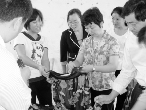 9月15日上午,市妇联有关人员在太康县朱口镇妇女刘文静创办的“来料加工”作坊参观。目前,刘文静的“来料加工”作坊产品全部销往温州,然后从温州出口到外国市场,带动该镇近200名留守妇女就业,每人月收入可达到500~600元。晚报记者 张洪涛 摄