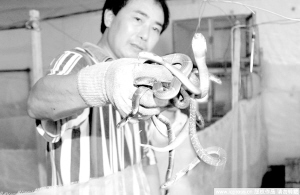 本报综合消息 9月14日,重庆綦江县,村民蔡勇在家饲养眼镜蛇,由于管理不善,逃脱160条,引发村民恐慌。当地相关部门到场处置。目前,除绝大多数被抓回或被受惊村民砸死外,仍有五六条下落不明。 (重晚)