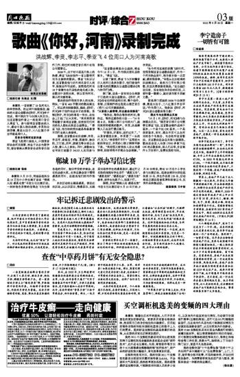 家是周口项城的2008年全国劳模、奥运火炬手、三八红旗手李志平说:“作为周口人,能参加《你好,河南》大型公益歌曲很自豪!”