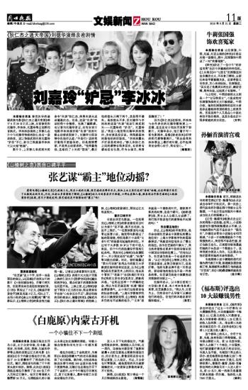 本报综合消息 徐克执导的悬疑武侠电影《狄仁杰之通天帝国》将于9月29日正式上映,日前徐克和刘德华、李冰冰、刘嘉玲等主创亮相首映式。李冰冰扮演的上官静儿在片中与刘德华饰演的狄仁杰有一段亲热戏,这让饰演武则天的刘嘉玲“妒忌”不已,称自己很羡慕李冰冰可以大饱“艳福”。