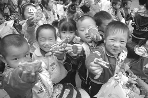 9月22日上午,淮阳县许湾乡李灵希望小学校园里欢声笑语、热闹非凡。当日是我国传统节日中秋节,这里的500多名留守儿童虽然不能跟远在外地打工的父母团聚,但师生们欢聚一堂,校园成了一个欢乐的大家庭。当天的活动现场,留守儿童们分别领到了学校发的新书包、文具盒、运动鞋、水果和月饼,幼儿园的小朋友还领到了T恤衫等节日礼物。 晚报记者 杜欣 摄