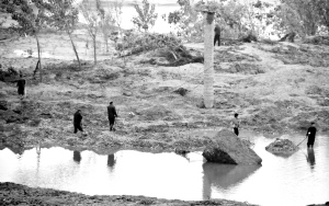 9月8日的洪峰把河中心的一处“小岛”冲垮,洪水退去,露出了河床,引发了市民的“挖宝热”。据了解,市民在此处挖出的大多是一些破碎的瓷器。