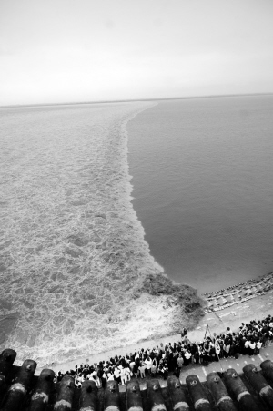 9月25日,钱塘江“一线潮”经过浙江海宁沿岸。当日是农历八月十八,“八月十八潮,壮观天下无。”这是宋代诗人苏轼形容钱塘江潮的著名诗句,数十万名中外游客来到浙江海宁盐官镇观看波澜壮阔的钱塘江潮。新华社发