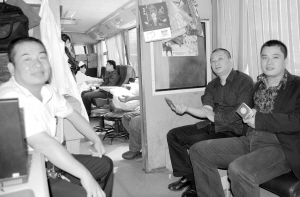 9月26日上午,在鹿邑县影剧院门前,数位市民正在一辆采血车上献血。国庆在即,连日来,鹿邑县一些市民以献血这种独特方式迎接共和国61岁华诞。晚报记者 侯国防 通讯员 蒋保庆 摄