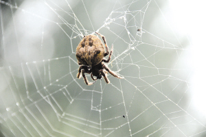 当天上午,记者见到了这只黑褐色的大蜘蛛。它刚好抓到一只苍蝇,正吃得津津有味(如图)。该居民称大蜘蛛在此安家很久了,每次看到它时,总见它在吃害虫。由于该蜘蛛体型较大,长约五六厘米,看上去像一只小螃蟹,格外引人注目,附近居民纷纷称奇。