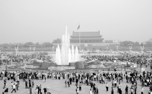 广场东、西两侧绿地,今年不再像往年那样搭建主题花坛、点缀各种微缩景观,而是用鼠尾草、孔雀草、串儿红、四季海棠、小菊等地栽花卉,布置成紫、黄、橘、红等颜色的花岛和流线型大花带,看起来简洁、绚丽,富有现代感。