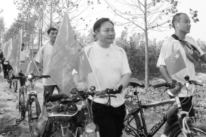 10月1日,一群商水驴友推着插着国旗的自行车准备出发。据介绍,商水驴友们计划从商水县城出发,到达目的地西安后短暂停留,然后途经延安等红色革命根据地返回,历时7天。