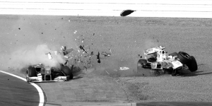 由于受到暴雨影响,F1日本大奖赛排位赛推迟到昨天上午举行。红牛车队延续了此前的强势表现,瓦特尔和韦伯占据发车前排。在当天比赛中,最倒霉的无疑是法拉利车手马萨。在排位赛中遭遇慢车阻挡无缘最后一节排位赛。从12位起步的马萨在开赛后又早早卷进撞车事故,早早退出了日本站的争夺。比赛刚开始就发生了一连串的事故,佩德罗夫发车时走中线试图超越前车,但他与左侧威廉姆斯车队的霍肯伯格发生了碰撞。两车相撞后,佩德罗夫的雷诺赛车撞向了一侧的防护墙。胡肯伯格的赛车也受到了影响。同一时间,马萨受佩德罗夫撞车影响,在进第一弯时失控与印度力量的里尤兹发生撞车,两人一起双双退赛。安全车出动后,库比卡的赛车突然在赛道上慢了下来,波兰人的右后轮“神秘脱落”不得不退赛。仅3圈过后,就先后有6辆赛车退赛。不过,赛道上的混乱并没有影响红牛两员大将的表现,瓦特尔在比赛中表现得相当稳定,他最终顺利地第一个冲过终点线。