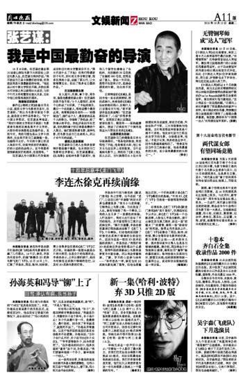 《中国达人秀》经过4个月的激烈角逐,来自北京的无臂钢琴师刘伟以神秘花园的钢琴曲搭配流行歌曲《You’re Beautiful》获得总决赛的冠军。演出结束时他自豪地说:“至少我还有一双完美的腿。”乐观向上的刘伟赢得了现场最热烈的掌声与欢呼。伶牙俐齿的张冯喜,凭借模仿周立波海派清口博得了上海观众最多喜爱。陈凯歌、蔡依林为“中国第一达人”刘伟颁发冠军奖杯。(张静)