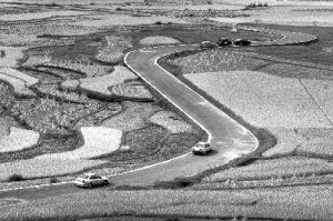 走进高坡,在弯弯曲曲的竹林中穿行,到处可见两三层的苗家小楼,上面挂满了辣椒和苞米,空地上晒满了稻谷,一片祥和的丰收景象。站在田野高处,满目金色,一望无际的梯田里稻浪滚滚,层层田坎就像作曲家笔下的“五线谱”,田间耕作的农夫如跳跃的音符,秋韵十足。