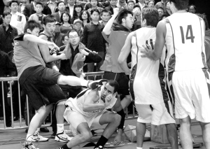 篮球场上球员之间的冲突和斗殴事件,一直是件难以禁绝之事。CBA联赛中,每年都有这样的事情发生。中国队在国际比赛中打群架,也已发生过好多回了。10月12日更是创了一个纪录:比赛仅打了一分钟,就结束了;打架却打了两回,打架时间比比赛时间还多了两分钟!