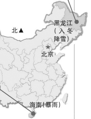 据新华社电 10月17日早晨中央气象台发布的天气预报显示,我国多地出现恶劣天气:东北早早地下雪了,温度还将继续下降;海南还将继续遭受暴雨的侵袭;而今年最强台风,也将在10月18日到我国南海海域“添乱”。