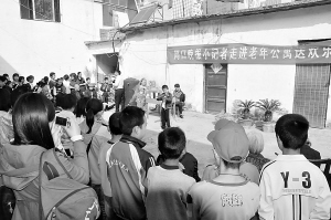 文艺表演结束后,小记者们把自己带来的点心和亲手制作的工艺品送给老人。接着,在工作人员帮助下,一个有“祝老人节日快乐”字样的大蛋糕被切成许多份,由小记者们恭敬地向老人们一一端上。