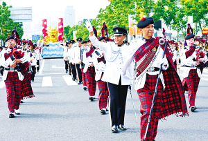 10月19日,香港警察乐队在上海世博园进行“香港弹起”巡游表演。