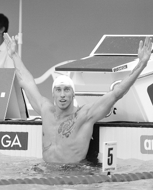 据法国《队报》10月20日报道,该国游泳名将布斯凯因服用禁药被临时禁赛两个月。这是8月15日,法国选手布斯凯在2010年欧洲游泳锦标赛中,获得男子50米自由泳金牌后庆祝的资料照片。