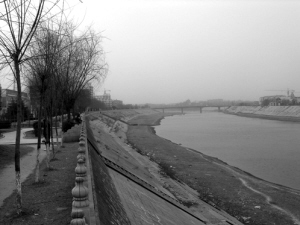 走近大庆路桥,岸边的树从清晰走向依稀,最后与水天在远方一起隐在白茫茫的雾中。汛期大水退去之后的浅滩,像老人脸上的皱褶,无声地诉说着一种曾经的存在。