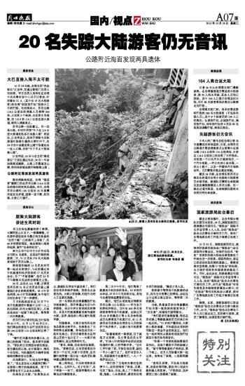 20名失踪大陆游客仍无音讯