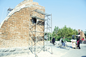由于周口人民公园大门外墙墙皮脱落较多,影响了城市形象,公园领导决定将斑驳的外墙粉饰一新。昨天记者看到,公园大门前搭起了脚手架,原来的外墙已被工人处理干净(如图)。