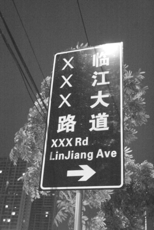 10月26日凌晨,记者来到猎德大桥在天河一侧的上桥处。只见在马路边上,竖立着这样一块路牌(上图)。这块路牌指示前方路口右转,可以进入临江大道和“×××路”,这块路牌不仅用中文写着“×××路”,就连下面的英文也标注着“×××Rd”。临江大道对于不少广州市民来说并不陌生,然而这个“×××路”却着实迷惑着过往的路人。尽管夜已深,但仍有不少吃完夜宵归家的市民对着这块路牌指指点点。根据路牌上面的内容,街坊陈先生表示“×××路”可能指的是附近一条新修的马路,“恐怕有关部门还没想好这条路该叫什么名字吧,所以用‘×××’代替”。(金羊)