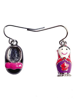 ▲造型可爱的娃娃和鞋子,组成一对俏皮的耳环。