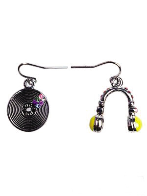 以黑胶唱片和耳机为主题设计的不对称耳环,是热爱摇滚女生的最爱。