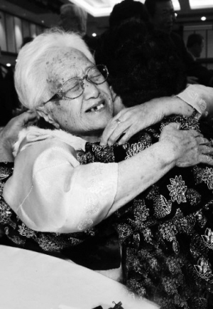 “我终于见到你了。我一生从未忘记你,今天终于见到你了。”96岁的韩国老人金礼贞(音)抱住她71岁的女儿禹贞惠(音),两人老泪纵横。(左图)“多少个夜晚,我只能在梦中和你团聚。”梦里,女儿还是小时候的样子,金礼贞说,“现在你就在我眼前,就在我眼前。”