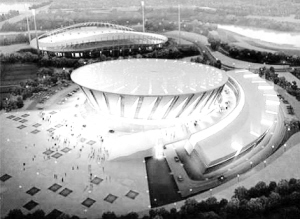 广州体育馆是为“中国第九届运动会”建设的一座现代化综合性多功能体育设施,是“九运会”体操、篮球等项目的比赛地和盛大的闭幕式举办地。它是广州市新世纪的重点、标志性建筑。广州体育馆建设内容有:主场馆、练习馆、大众活动中心、行政楼、餐厅、中央能源中心、停车场、运动员村及附属停车场、商业设施等,它是一个以体育比赛为主,兼顾文艺表演、会议展览的多功能综合性体育建筑。