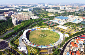 图为亚运会期间将举行板球比赛的广州大学城板球场(摄于10月29日)。位于广州大学城广州工业大学的亚运板球场,是国内第一块标准板球场。广州大学城集中了21个亚运场馆,占亚运场馆总量的三分之一。新华社记者 刘大伟 摄