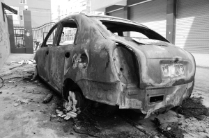 昨日上午9时许,记者在现场看到,“自焚”的轿车只剩下空壳,已经看不出本来颜色和车型,但车牌号仍清晰可见。在距离“自焚”轿车不到1米远地方是一座2层楼房,楼房后墙已被大火熏黑,一扇木窗户也烧毁。“轿车‘自焚’时,火苗有2层楼房高,还有响声,可吓人了!”坐在附近晒暖的老人说,这辆车还是新车,是辆红色的轿车,车主就住在附近。