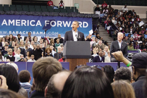 10月31日,美国总统奥巴马在俄亥俄州克利夫兰州立大学举行的集会上发表演说,为民主党拉票。美国将于11月2日举行国会中期选举,将改选众议院全部435个议席和参议院100个议席中37席,同时改选37个州的州长。新华社发