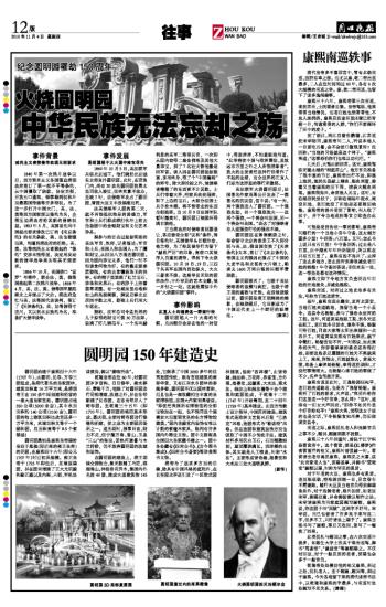 圆明园始建于康熙四十六年(1707年),由圆明、长春、万春三园组成,是清代著名的皇家园林,建筑面积逾16万平方米,是清朝帝王在150余年间创建和经营的一座大型皇家宫苑。圆明园占地350公顷(5200余亩),其中水面面积约140公顷(2100亩),圆明园的陆上建筑面积比故宫还多一万平方米,水域面积又等于一个颐和园,总面积竟等于8.5个紫禁城!