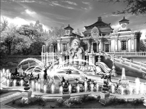 清帝为了追求多方面的乐趣,除具有中国风格的庭院外,在长春园北界还引进了一区欧式园林建筑,俗称“西洋楼”,由谐奇趣、线法桥、万花阵、养雀笼、方外观、海晏堂、远瀛观、大水法、观水法、线法山和线法墙等十余个建筑和庭园组成,于乾隆十二年(1747年)开始筹划,至二十四年(1759年)基本建成。由西方传教土设计指导,中国匠师建造。建筑形式是欧洲文艺复兴后期“巴洛克”风格,造园形式为“勒诺特”风格。但在造园和建筑装饰方面也吸取了中国不少传统手法。建筑材料多用汉白玉石,石面精雕细刻,屋顶覆琉璃瓦。西洋楼的主体,其实就是人工喷泉,时称“水法”。主要形成谐奇趣、海晏堂和大水法三处大型喷泉群。