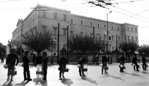 上图为希腊警方在希腊国会前拉起了警戒线。新华社发