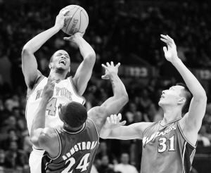 本报综合消息 北京时间昨天上午,易建联所在的奇才队背靠背主场迎战骑士队,最终奇才以102比107败下阵来。易建联此役状态低迷,只得到2分2次助攻和1个篮板。而火箭队昨天在与马刺的比赛中雪藏了姚明,但他们经加时苦战,仍以121比124客场遗憾告负,遭遇5连败。(陈璐)
