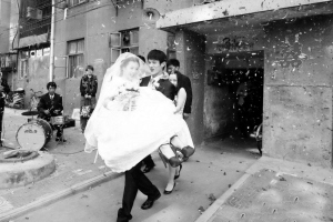 肖智怀抱爱妻出门。昨天,河南建业足球队7号球员,有着“玉面杀手”之称的肖智携手青梅竹马的女友陈燕走进了婚礼的殿堂。新体