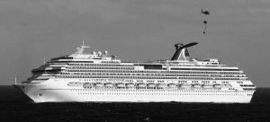 11月9日,“光辉嘉年华”号游轮停泊在墨西哥圣迭戈西南附近海域。 8日,这艘游轮机舱起火在墨西哥西部海域搁浅,近4500名乘客和船员受困。美国海军“罗纳德·里根”号已在事发海域协助救援。新华社发