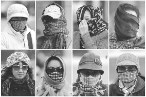 11月10日,出行市民“全副武装”应对风沙天气(拼版照片)。 当日,宁夏银川市出现大风沙尘天气,帽子、口罩、头巾、墨镜成为出行市民抵挡风沙的“利器”。新华社发