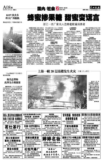 据杭州紫香糖业有限公司的销售经理透露,他们厂生产的这种果糖之所以供不应求、深受蜂蜜厂欢迎,是因为其中的一些指标和《蜂蜜》国家标准规定的差不多,能够检测过关。