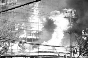这是11月15日拍摄的火灾现场。当日14时15分许,上海市中心静安区一幢正在进行外部修缮、28层高的教师公寓突发火灾,截至18时30分,现场大火基本扑灭,事故已导致12人死亡。据悉,具体事故原因及损失情况还在进一步调查中。
