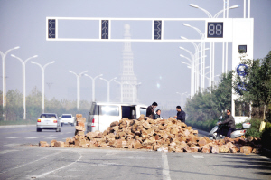 昨天,在周口大道与庆丰路交叉路口,路面上突然“冒出”一大堆石头,由于是白天,不少从此经过的车辆在看到遍地石头后都远远地绕开了。据目击者称,这堆石头是不久前经过该路口的一辆大货车由于速度过快,不慎翻车散落的。据悉,当天,这些路面上的“炸弹”已被及时清理。