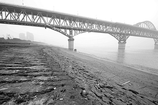 11月17日,长江九江段大面积河床已经出现干枯裸露。今年10月份以来,受天晴少雨和长江上中游来水量减少等原因的影响,长江九江段水位持续下降,大面积河床已经干枯裸露。据江西省水利厅信息中心监测数据显示,截至11月17日8时,长江九江段水位已下降至9.87米。新华社发 长江九江段水位持续下降
