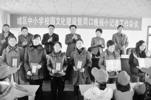 11月20日上午,在城区中小学校园文化建设暨周口晚报小记者工作会议上,12名优秀晚报小记者(上图)和6名优秀辅导老师(左图)受到表彰。晚报记者 朱海龙 摄