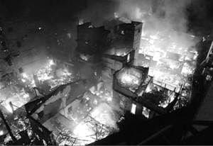 本报综合消息 福建省福州市台江区中选社区11月21日21时50分许发生大火,火灾发生之后,福州消防出动22辆消防车前往扑救,21日22时30分许,消防人员将明火扑灭。22日凌晨左右,结束了现场余火的清理工作。这次火灾造成约十三四幢居民楼被烧毁,几十户居民受灾。火灾并没有造成人员伤亡。22日凌晨,根据相关部门的统计显示,有39户受灾群众,疏散了300余人,过火面积达1300余平方米。(中声)