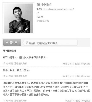 冯小刚的几段话成为今早转发数最高的微博之一,不少网友在评论中表达“冯导受啥刺激了,怎么发这么大飙”。还有相当数量的评论劝他想开点,“小刚同志,电影有商品属性,也有艺术属性。别人给你奖的时候也没见你婉拒嘛。论票房,谁也整不过刘德华。您是明白人。争争吵吵的,我愿意看成这是对《非2》的预热,行不?”(王雯淼)