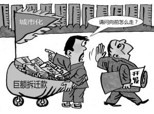 北京市大望京村在城市化进程当中被拆迁,村民变成了富翁,现在几乎是家家户户都买房、买车。然而,迅速到来的巨额拆迁款在带来财富的同时,也带来了各种始料未及的烦恼。许多村民希望,有关部门应该引导他们能够在城市中找到一个自己的位置,而不是发完拆迁款就了事。(2010年11月23日央视《新闻1+1》)