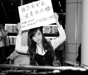 “接您到我家,免费给您睡”。一张张高挑美女在白云机场、广州火车站、天河体育中心门口等举牌提供免费住宿的照片,从11月起就开始在各大网络论坛、豆瓣群组和微博等迅速传播。实际上,这是由广州沙友发起的“免费提供沙发借宿”活动。据悉,已有数百广州沙友表示愿意提供免费沙发。据悉,“沙发客”简称CS,是英文CouchSurfing的中文翻译,顾名思义“就是睡别人家的沙发”,词语来源于一名叫芬顿的美国年轻人在2004年创立的自助游非盈利性网站。(海峡 荐)