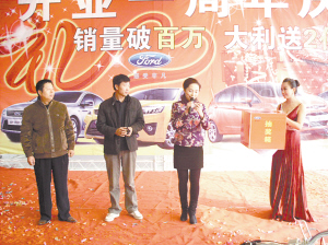 11月25日,长安福特周口铭阳4S店隆重举行开业一周年庆典仪式,新老客户参加了“优惠倒计时”等现场促销互动,并欣赏了精彩的文艺演出。(陈营营 摄)