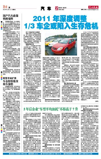 《新标准》规定,自2012年起至2015年,将分阶段对我国整车企业所生产的全部汽车产品燃料消耗量作出强制平均限值,这与之前的对企业单一车型限值有所不同。到2015年,第三阶段限值要比第二阶段整体下降20%,届时全部在售车辆的平均油耗将降低为7L/100km,如果不达标将被课以重税。目前,《新标准》正处于意见征集阶段,最快明年实施。