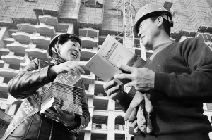 昨天下午,川汇区司法局工作人员带着法律书籍来到周口大道旁的一工地,为农民工送上法律知识宣传手册,并引导建筑商守法经营,不损害民工利益。